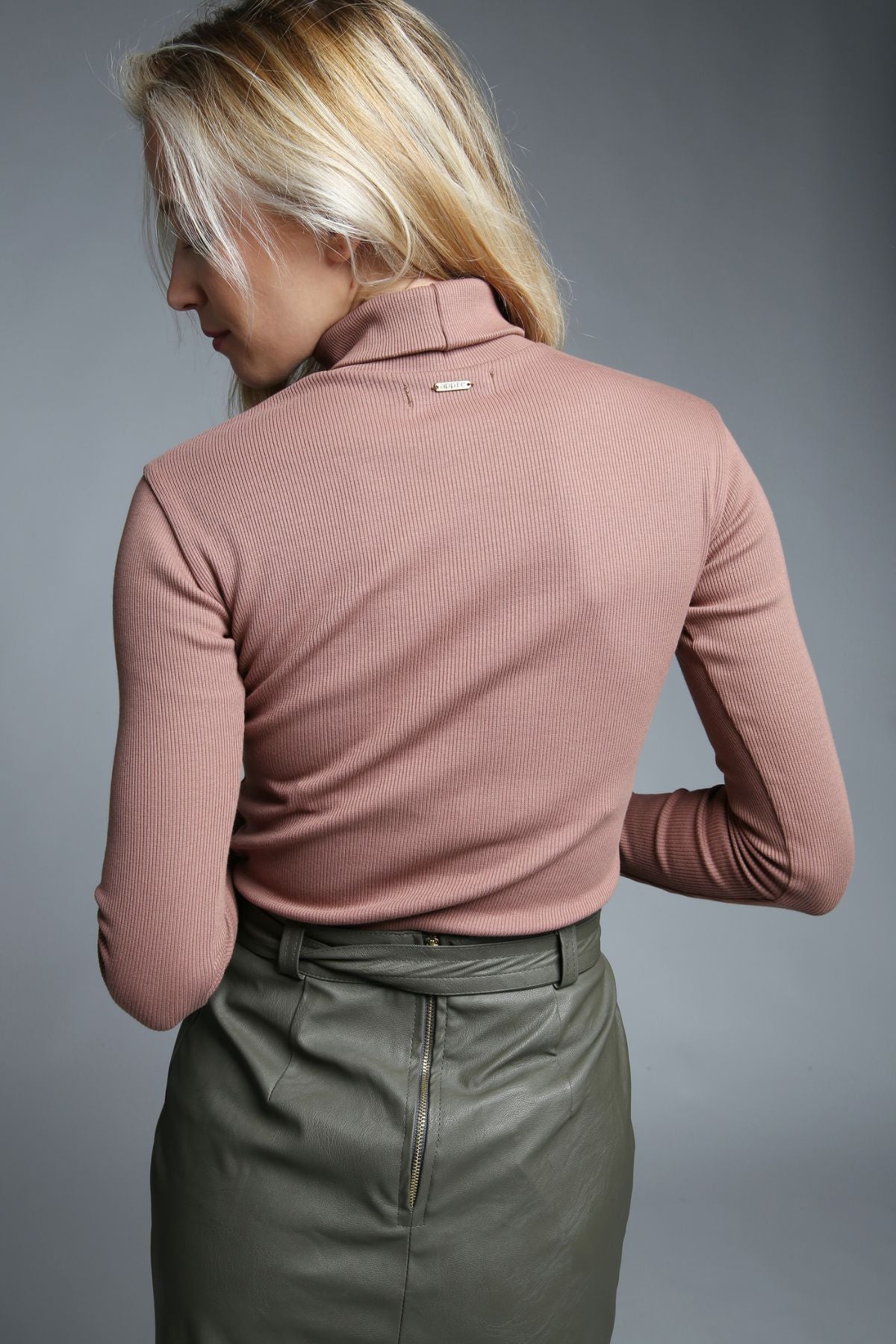 NOVINKA - Úpletový top s rolákem z organické GOTS bavlny - dlouhý rukáv - béžový
