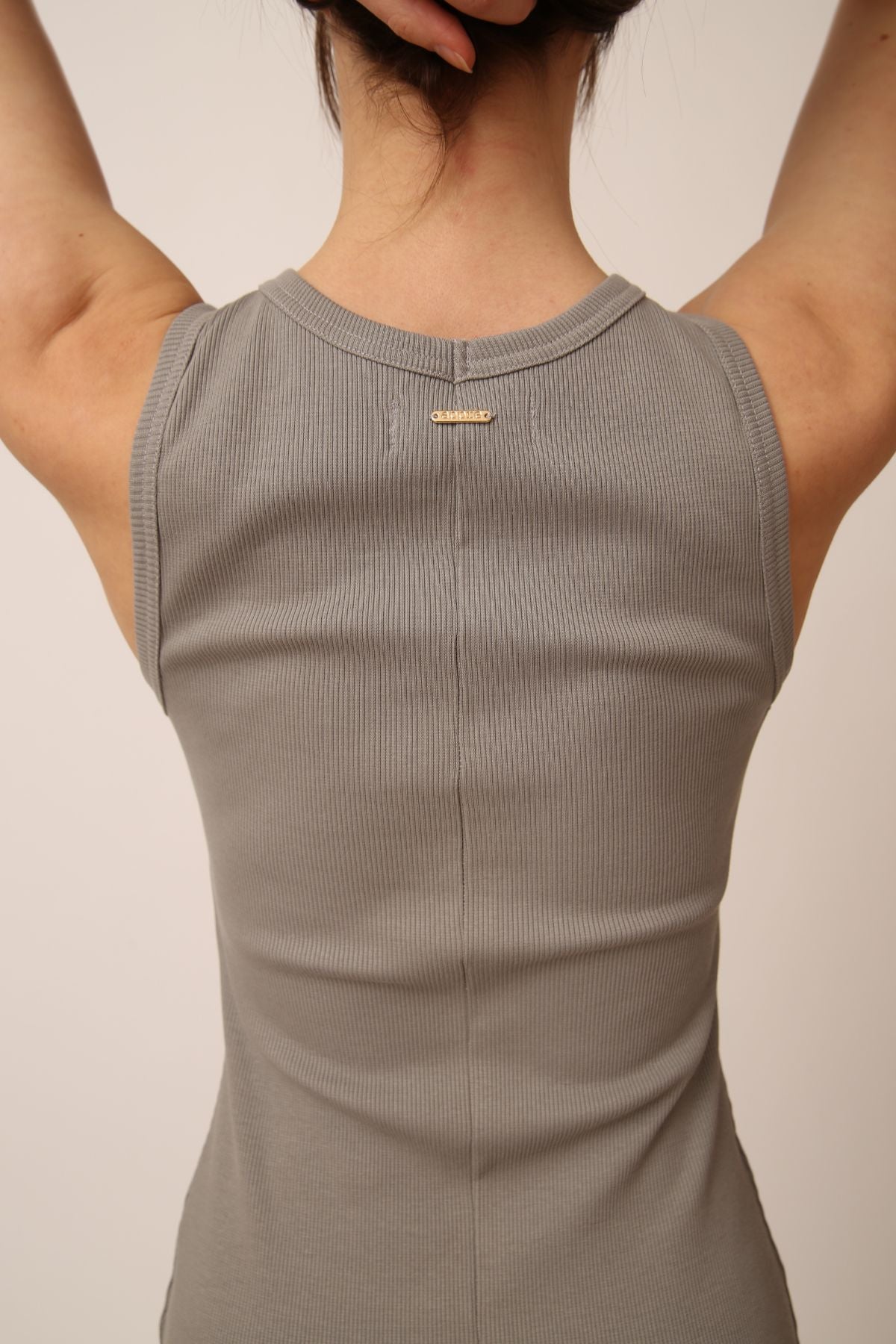 NOVINKA - Úpletové šaty s rozparkem z organické GOTS bavlny - bez rukávů - šedé
